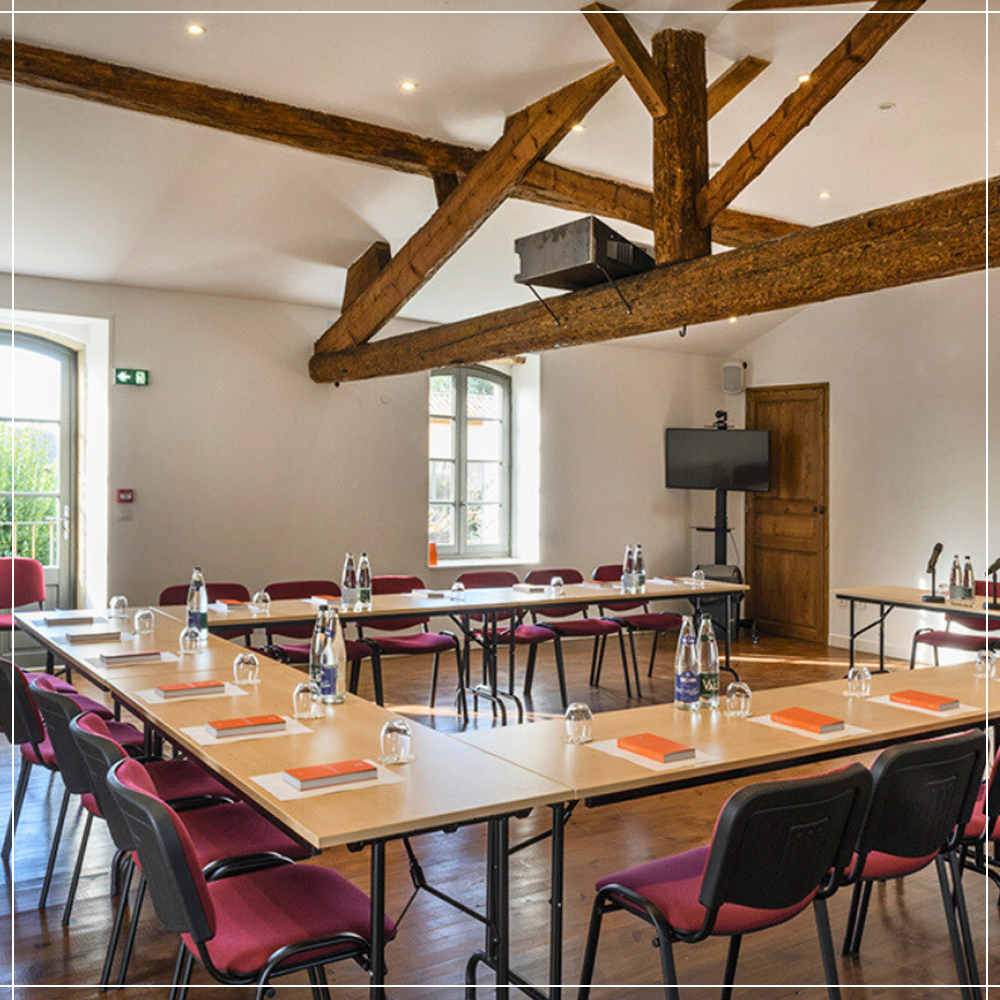 All our rooms have natural daylight and are fully equipped: video projector, screen, HF microphone, sound system, wifi, flipchart, markers… Depending on the weather, your breaks can be taken outside on one of our terraces or in a garden.